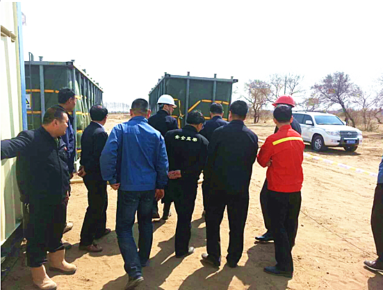 • 大慶油田有限責任公司副總經(jīng)理兼大慶油田管理局副局長萬軍同志調(diào)研我公司位于大慶油田采油九廠致密油區(qū)塊平臺移動式返排液項目處理現(xiàn)場.